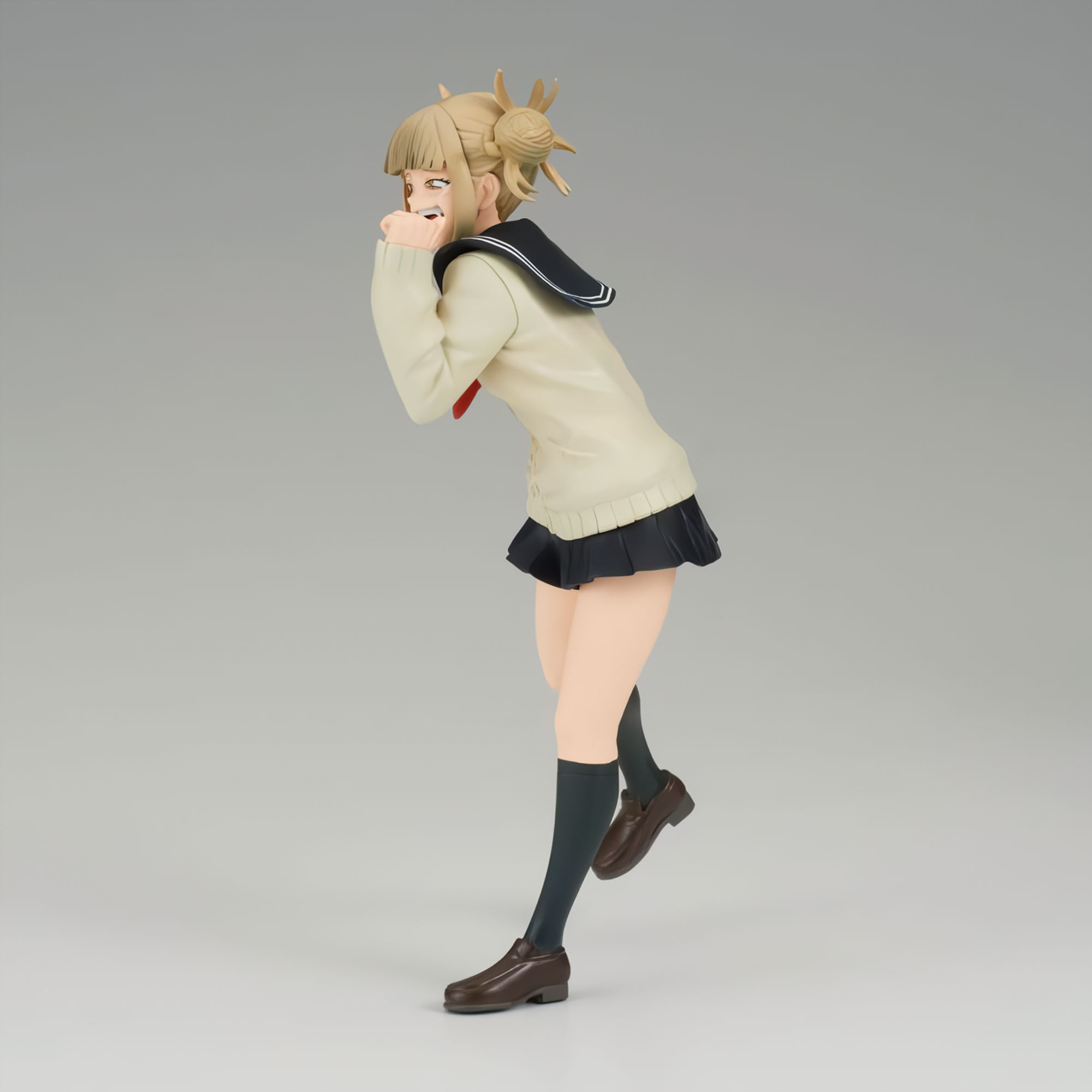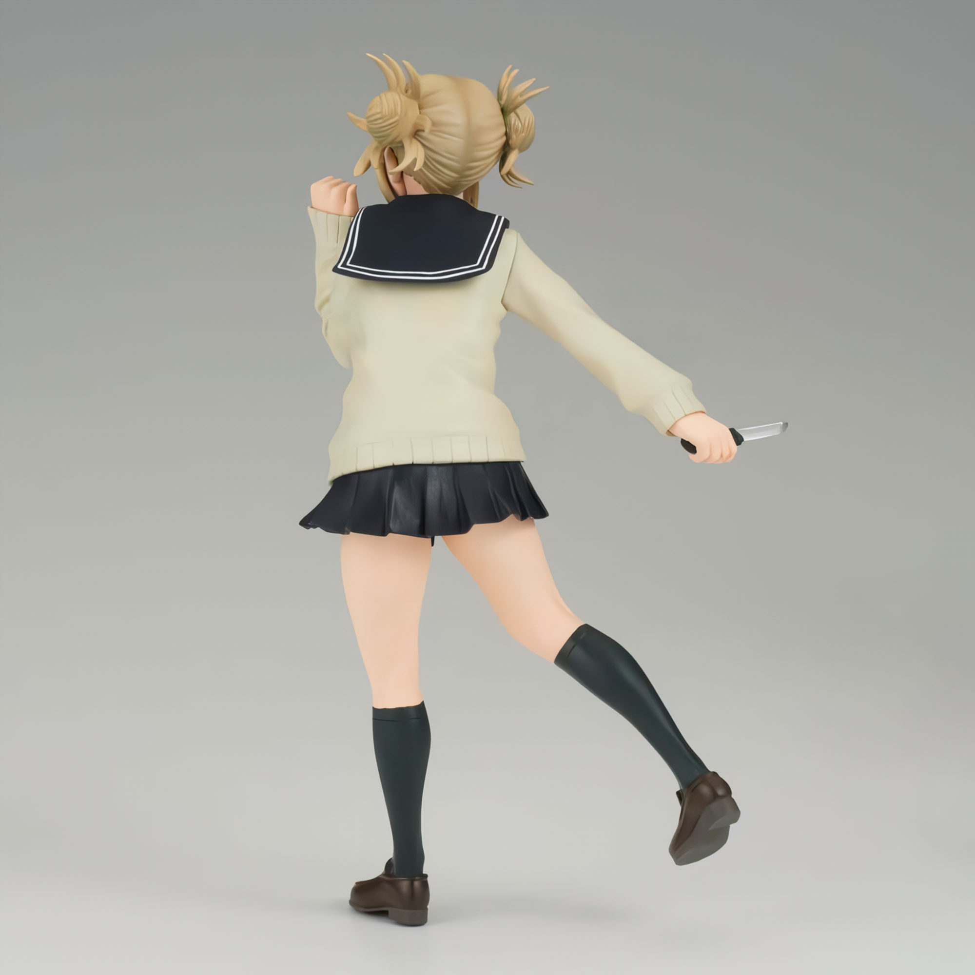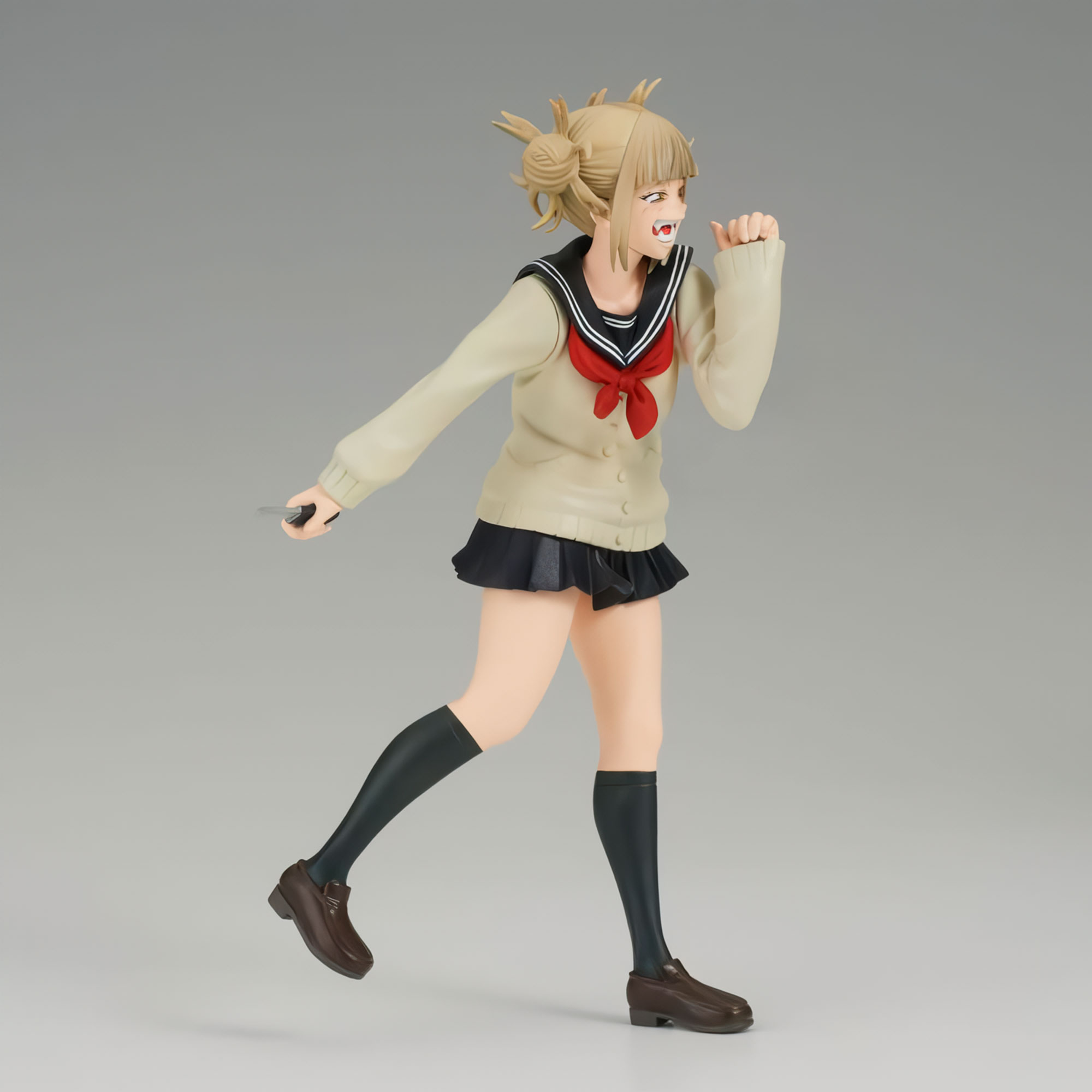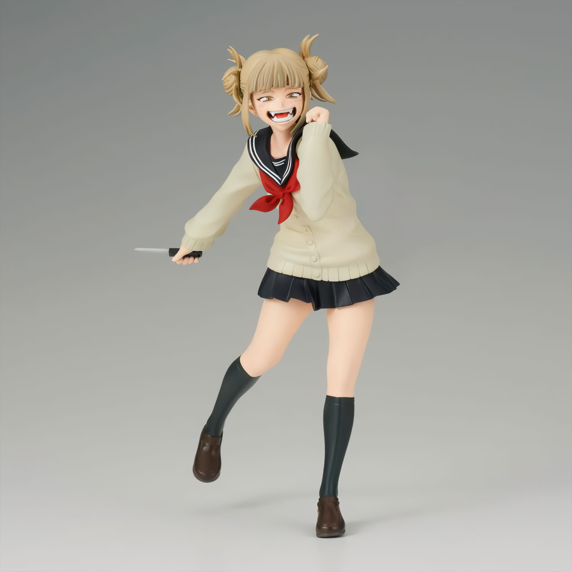 Banpresto se enorgullece de presentar la siguiente figura de la línea My Hero Academia The Evil Villains: ¡Himiko Toga! Representa al villano sádico sosteniendo un cuchillo mientras sonríe,